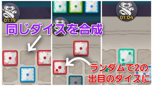 基本的にはこの立ち回りで試合をしていく。ダイスの特性によっては、最初から合成したほうが良い場合があるぞ!