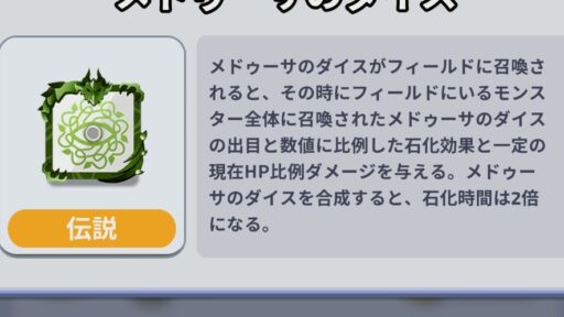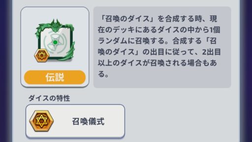 合成の際にダイスを召喚するのでSPを消費したくない場合にお勧めのダイス!序盤、終盤で活躍する。