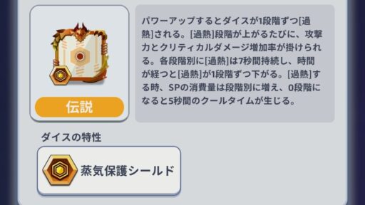パワーアップすると攻撃が増えるダイス!上級者向けのダイスで、過熱するタイミングとクールタイム、SP消費量を考えなければならない。