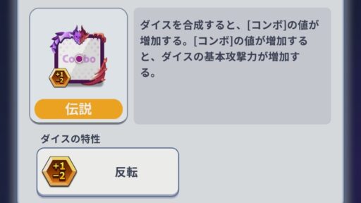 ダイスを合成すると攻撃力が上がるダイス!合成で無限に攻撃力が強くなるがSP消費が増えるので、召喚のダイスと相性が良い。