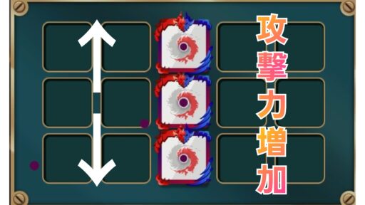 十字で並べると攻撃力が(出目×陰陽発動個数)倍攻撃力が増加する
